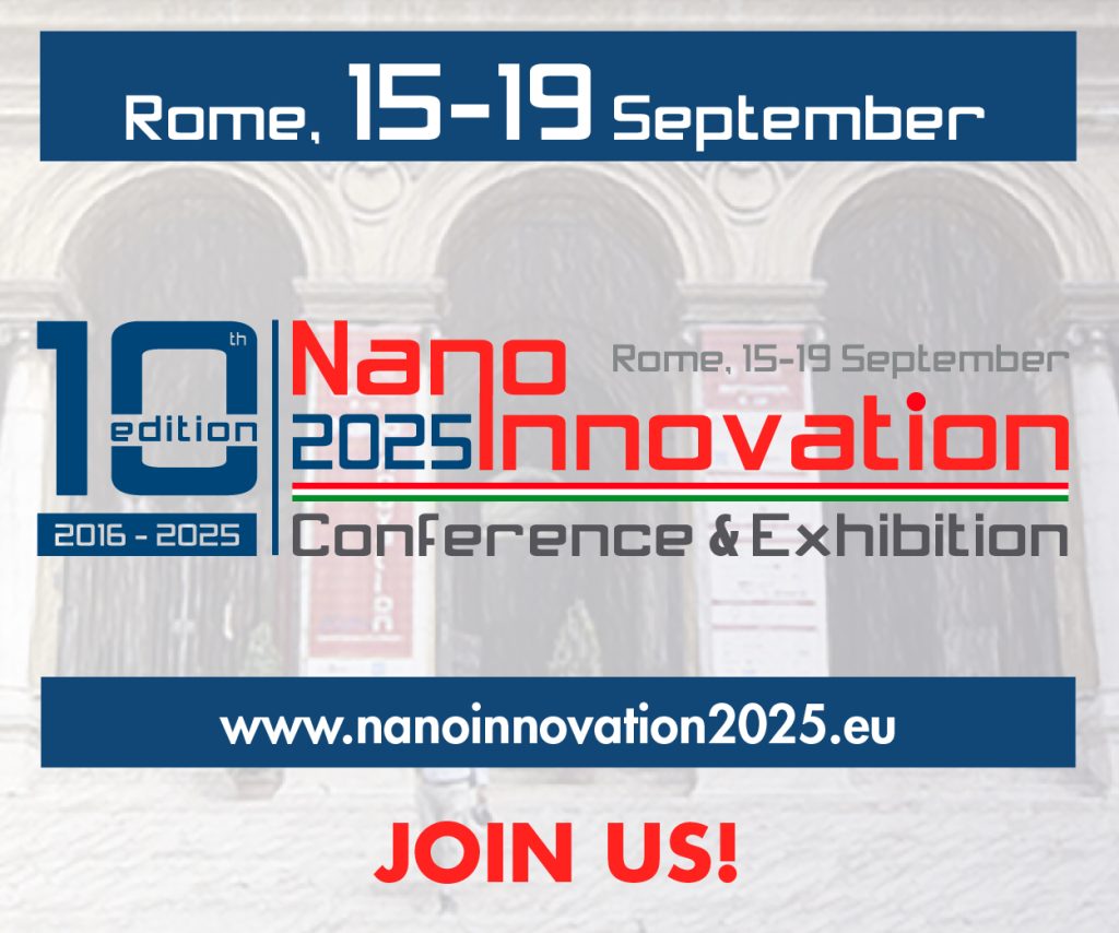 Dal 15 al 19 Settembre 2025 saremo a NanoInnovation presso la Facoltà di Ingegneria Civile e Industriale di Sapienza Università di Roma ( via Eudossiana 18- Roma)